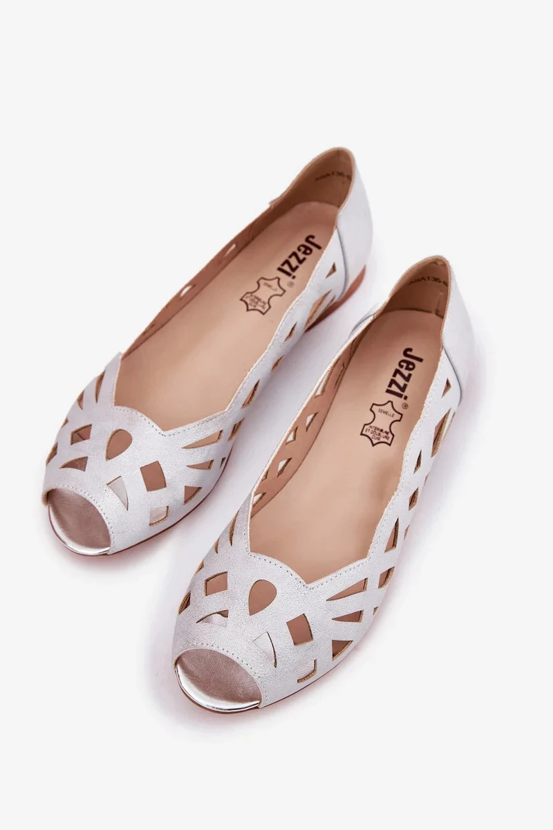 Dámské perforované baleríny s otevřenou špičkou Calgis – stříbrné