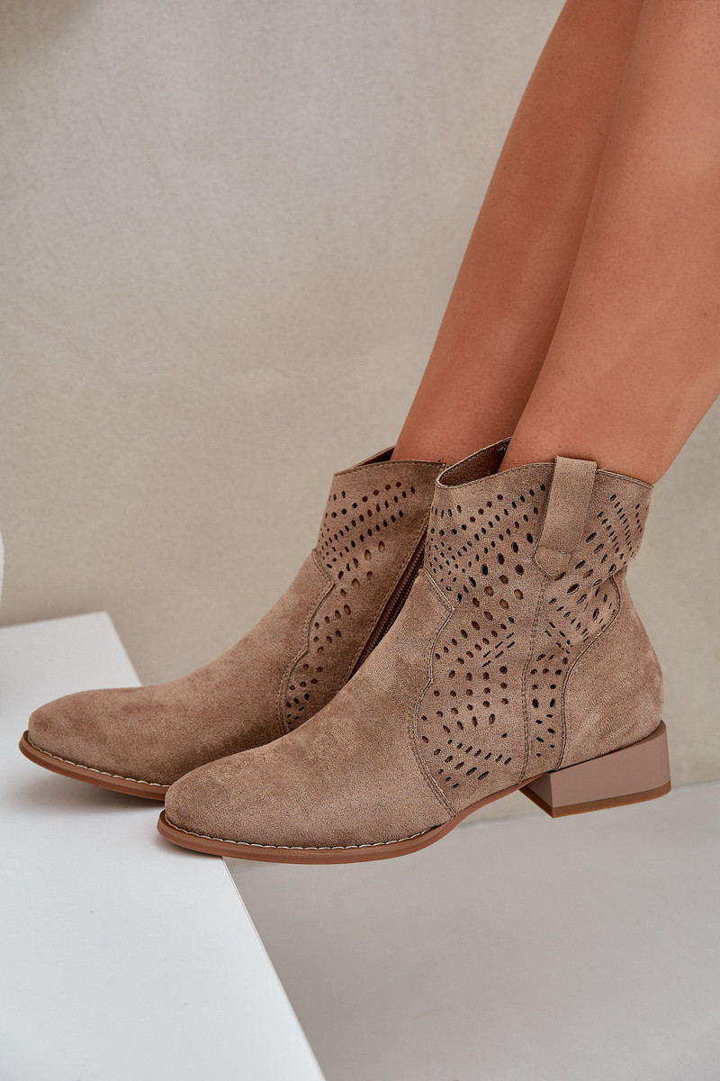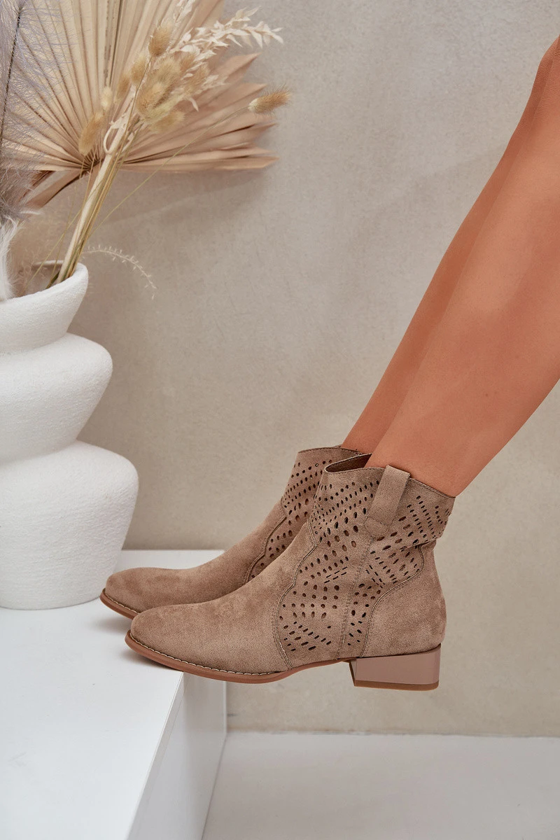Dámské perforované botky na nízkém podpatku béžové Neliawen