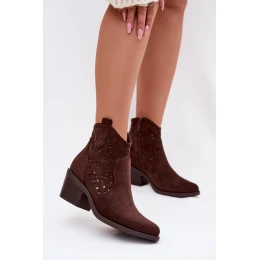 Dámské perforované kotníkové boty boty na podpatku Čokoládové model 22007407 - S.Barski