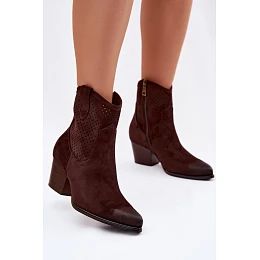Dámské perforované kotníkové boty Kovbojky model 22100121 Hnědé - VINCEZA