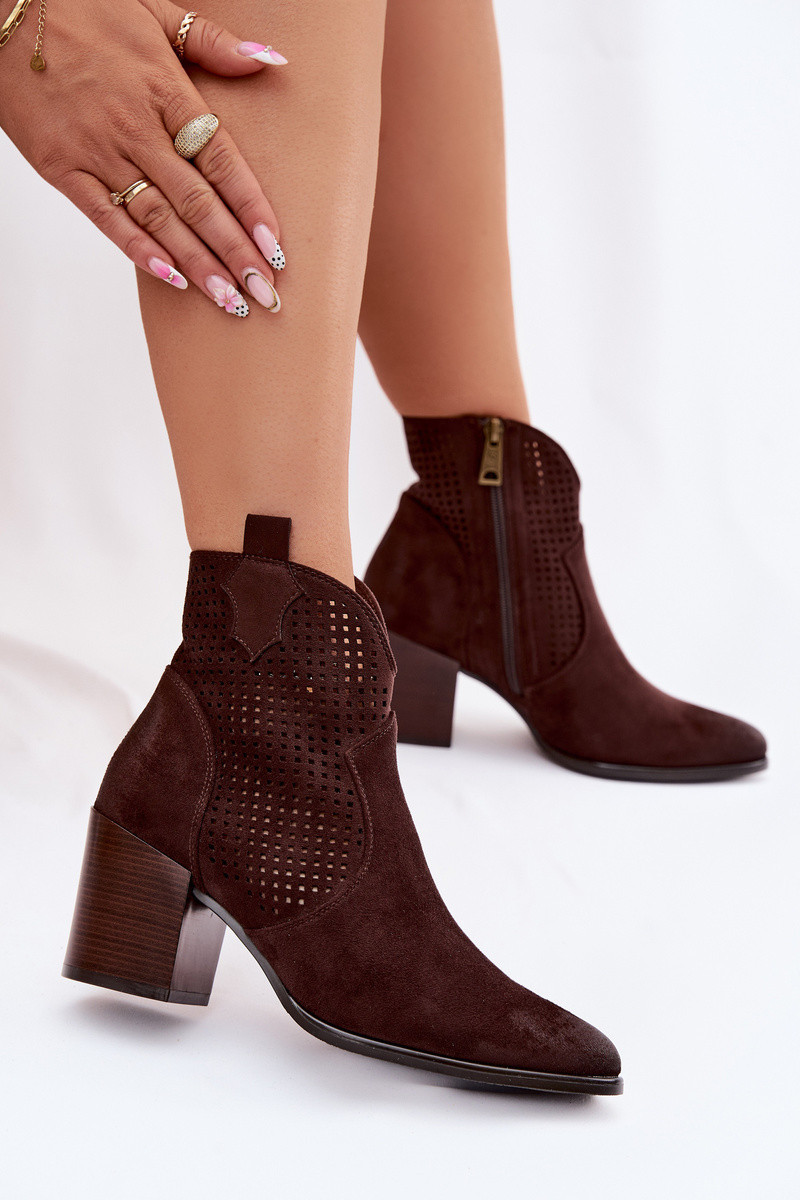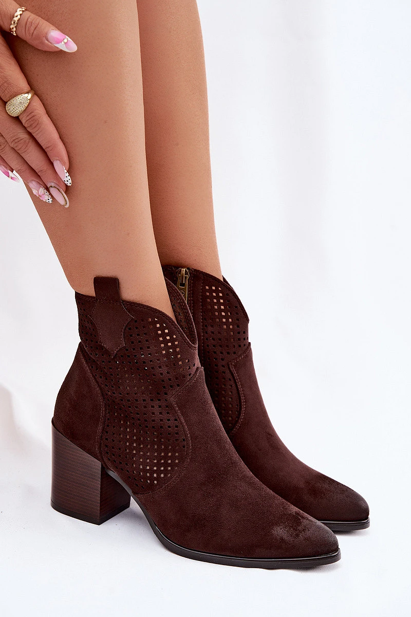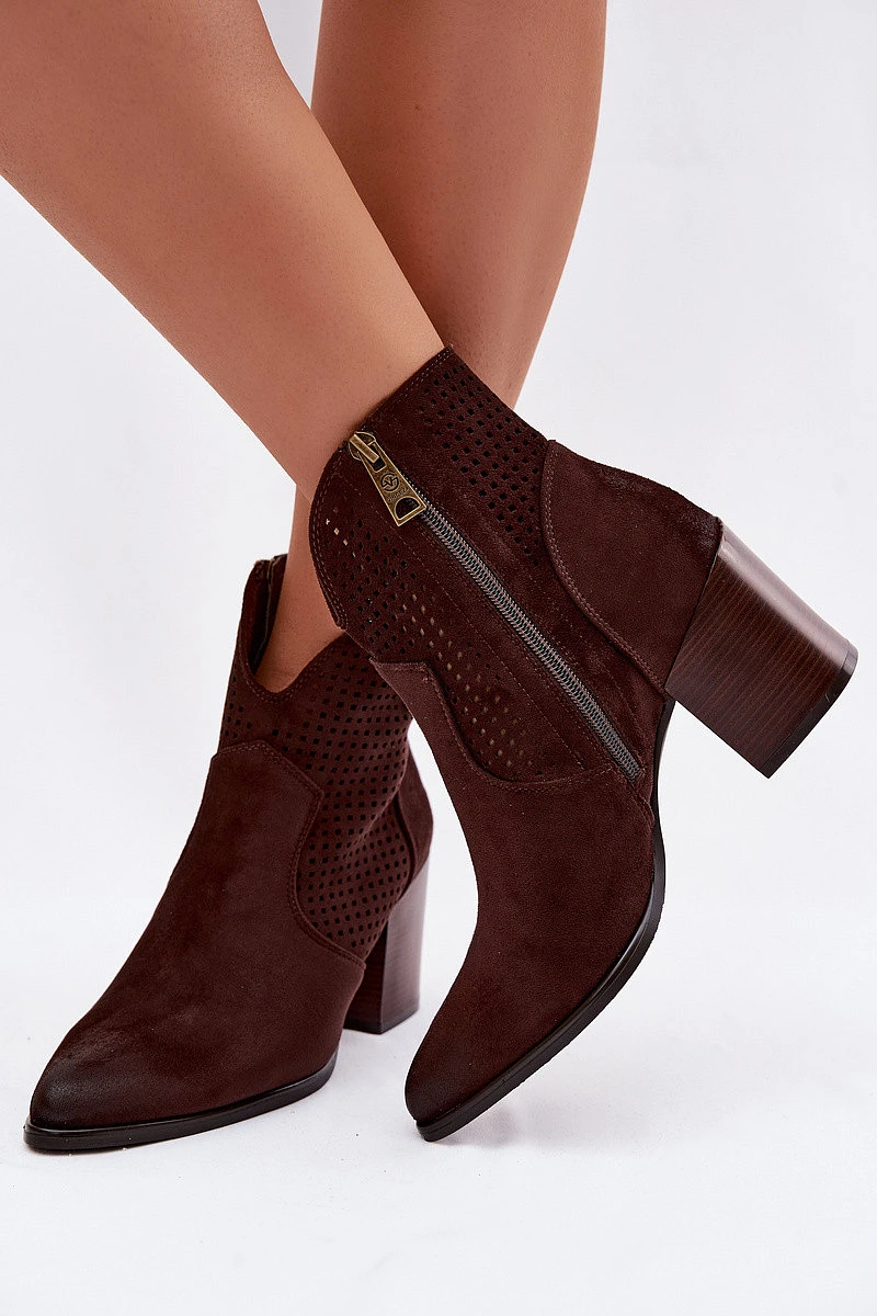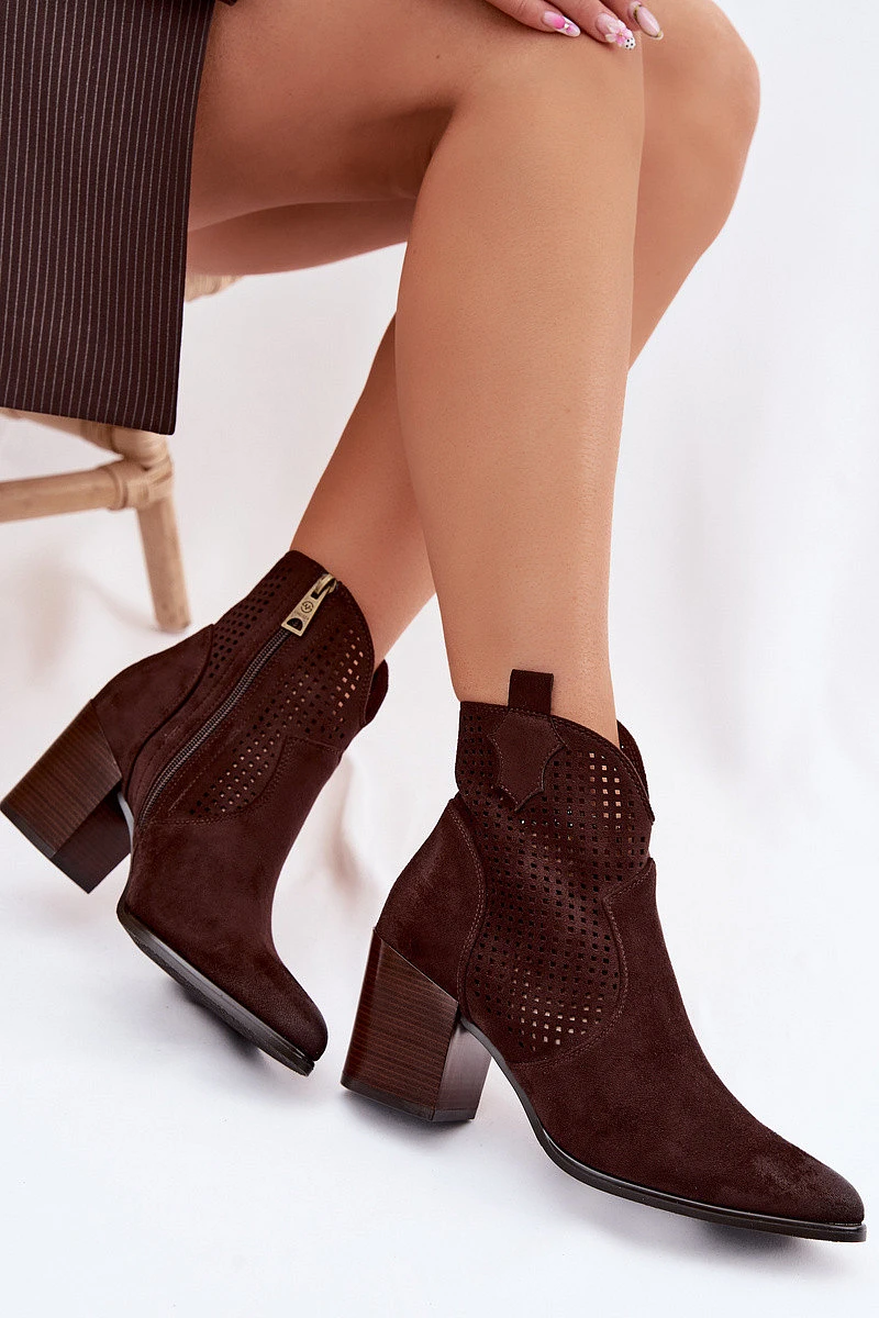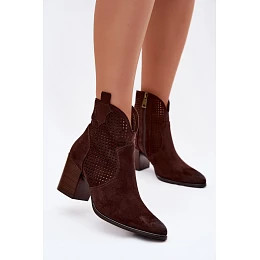 Dámské perforované kotníkové boty model 22100115 Čokoládové - VINCEZA