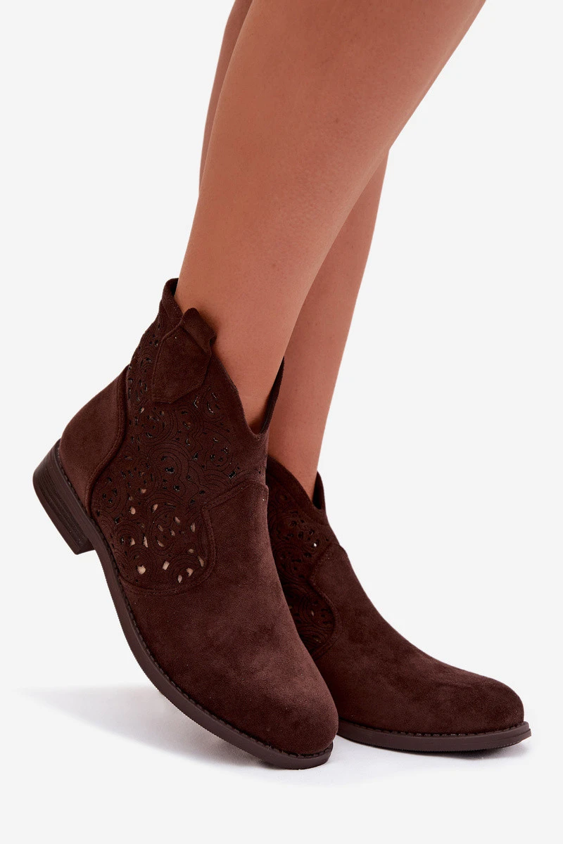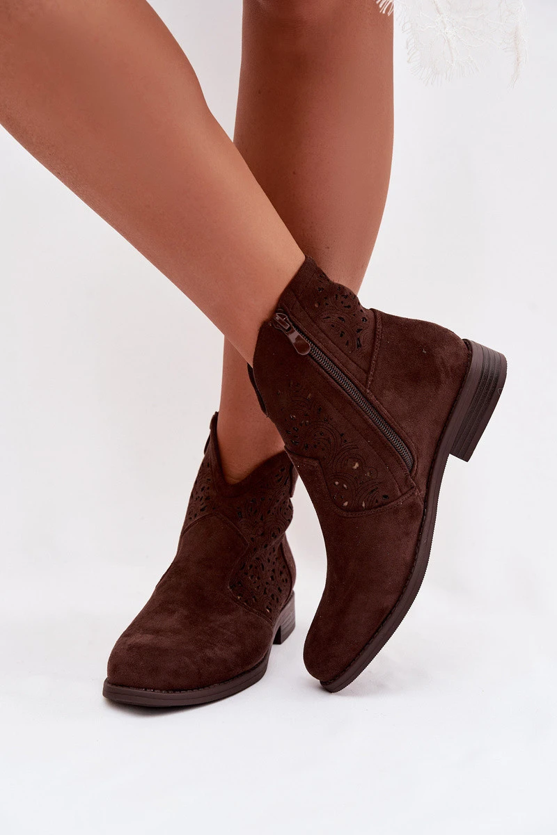 Dámské perforované kotníkové boty na nízkém podpatku S.Barski HY61-8026 Čokoládové