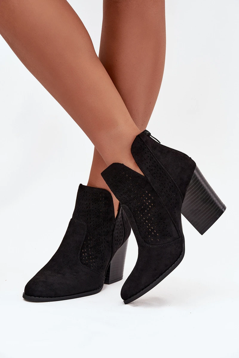 Dámské perforované kotníkové boty na podpatku S.Barski HY51-060 Černé