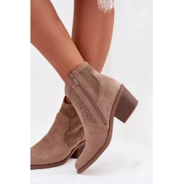 Dámské perforované kotníkové boty na podpatku S.Barski HY61-8013 Béžové