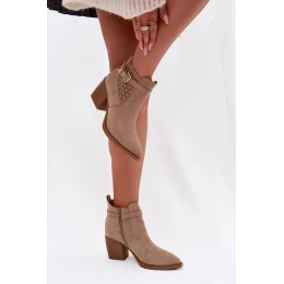 Dámské perforované kotníkové boty na podpatku s perforovaným vzorem a zlatým přezkou Béžové Deloriah