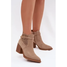 Dámské perforované kotníkové boty na podpatku s vzorem a zlatým přezkou Béžové model 22009808 - Boto