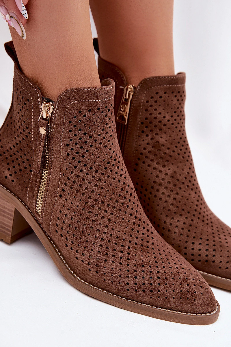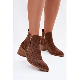 Dámské perforované kotníkové boty Vinceza 58621 Hnědé