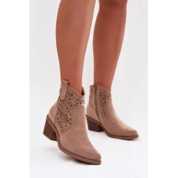 Dámské perforované kovbojky na podpatku model 21998076 Béžové - S.Barski