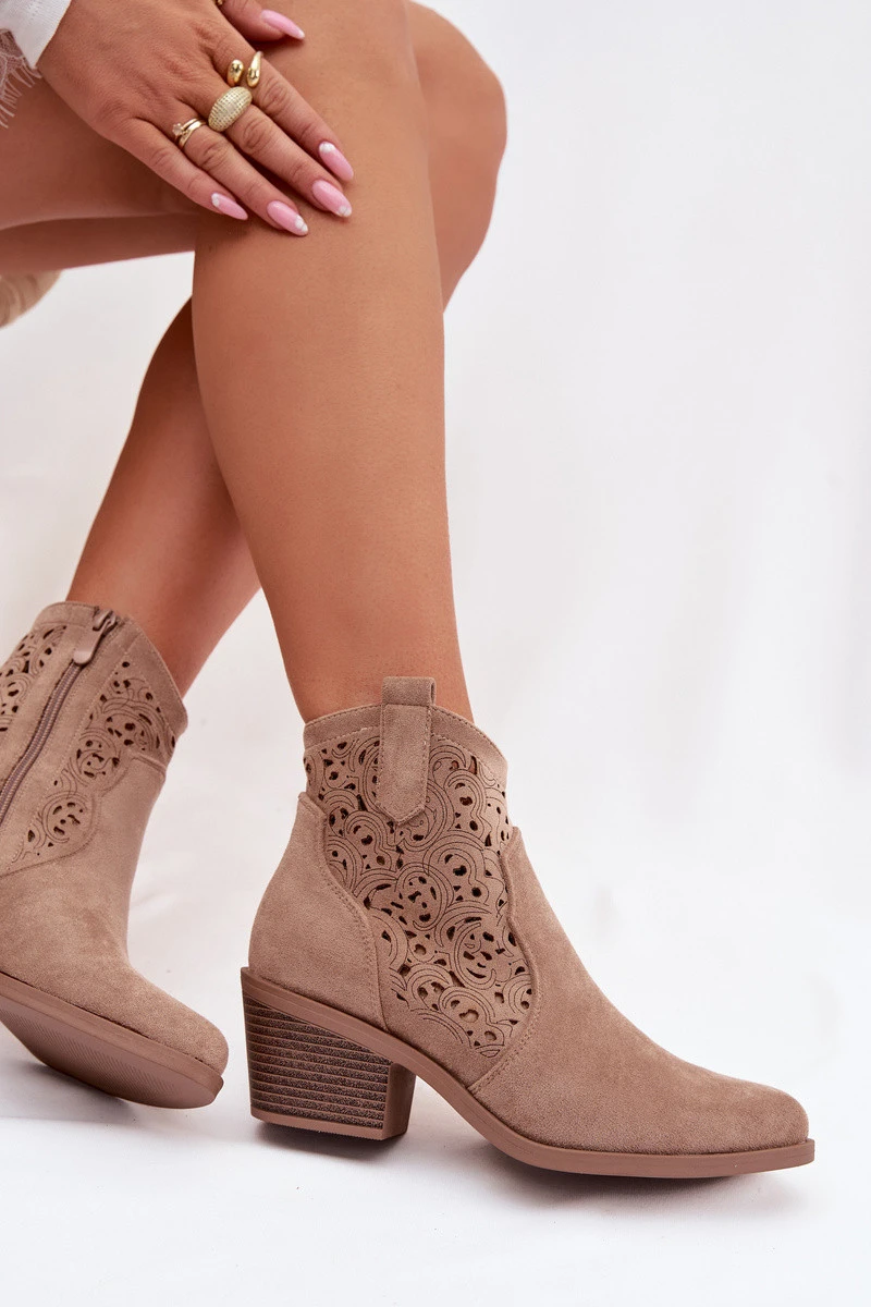 Dámské perforované kovbojky na podpatku S.Barski HY61-8012 Béžové