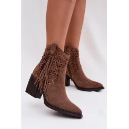 Dámské perforované kovbojky na podpatku s třásněmi Hnědé model 22009801 - Boto