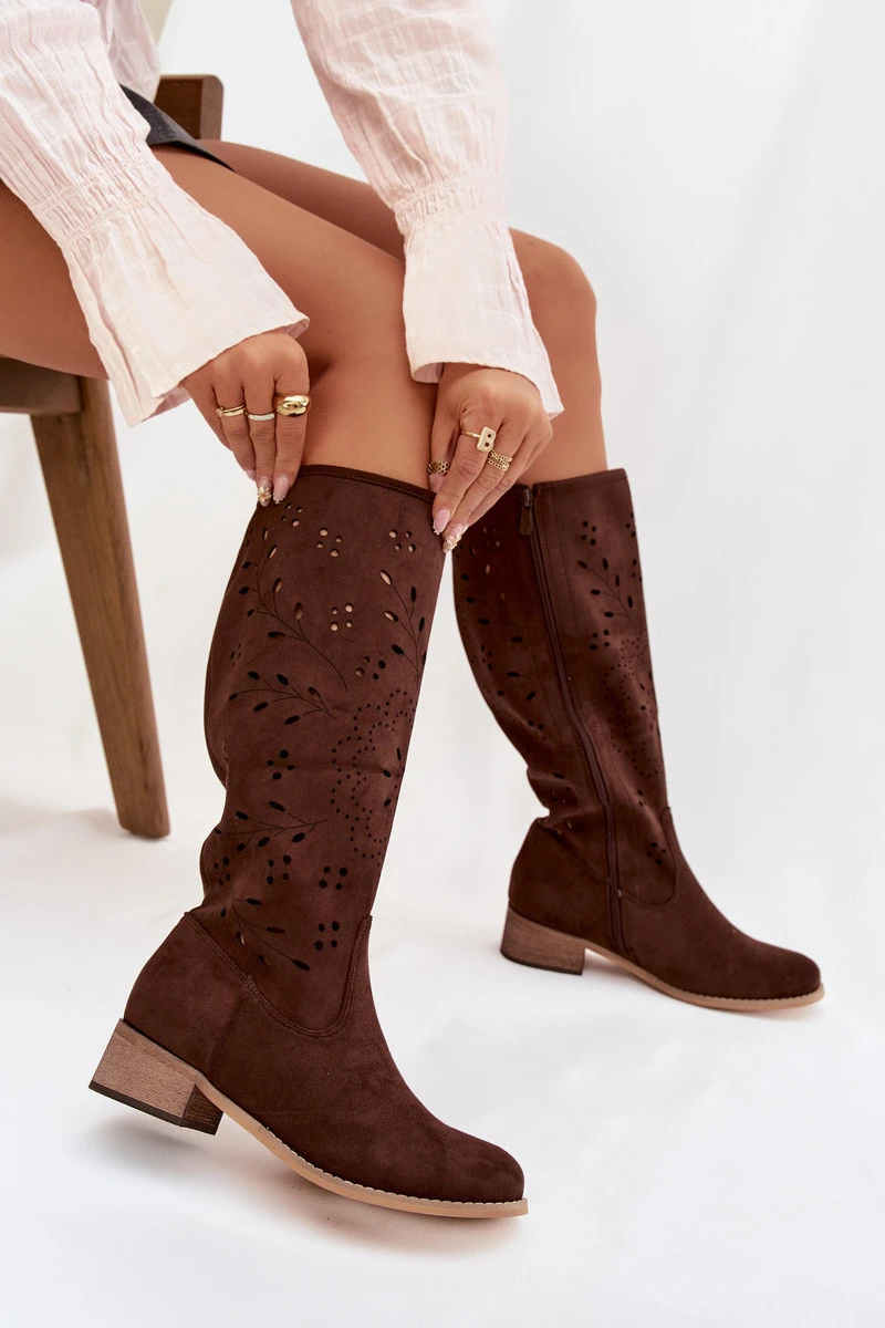Dámské perforované kozačky na podpatku Helinna – čokoládová