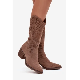 Dámské kovbojské kozačky Olivette v tmavě béžovém provedení spojují westernový styl s moderním designem. Ažurové (prořezávané) detaily dodávají obuvi vzdušnost a osobitý vzhled, zatímco stabilní podpatek poskytuje komfortní nošení během dne i večera. Tmavě béžová barva působí elegantně a univerzálně se kombinuje s džínami, sukněmi nebo šaty.