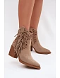 Dámské perforované kožené boty s kovbojským vzhledem na podpätku s třásněmi Béžové Calissey