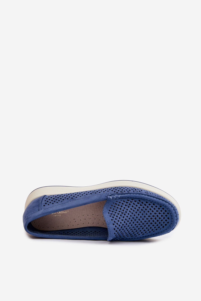 Dámské perforované mokasiny model 22069480 modré - SERGIO LEONE