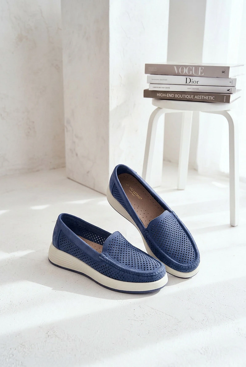 Přidání recenze k Dámské perforované mokasiny model 22069480 modré - SERGIO LEONE