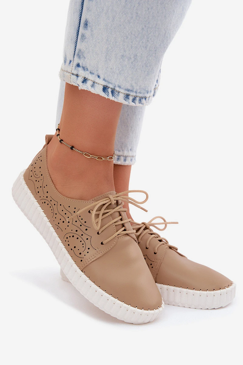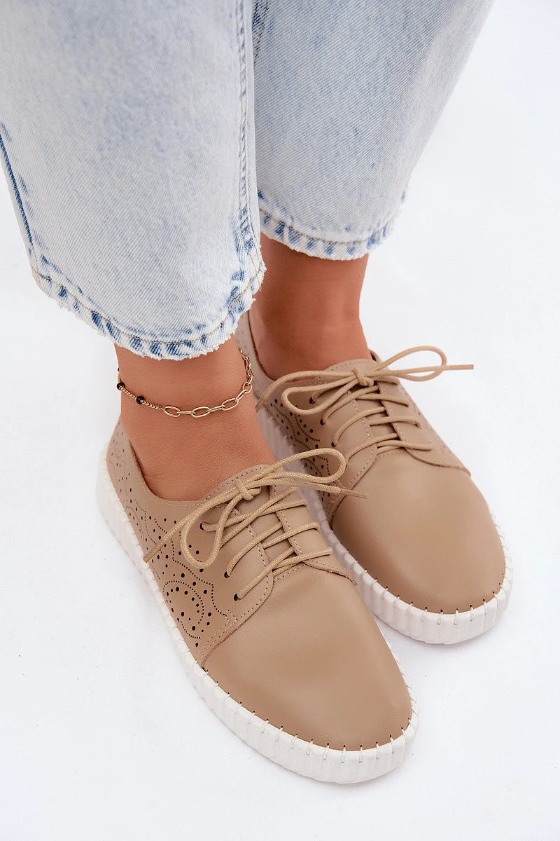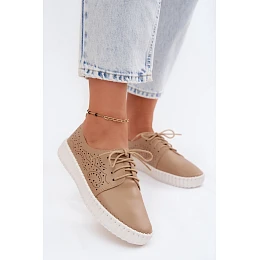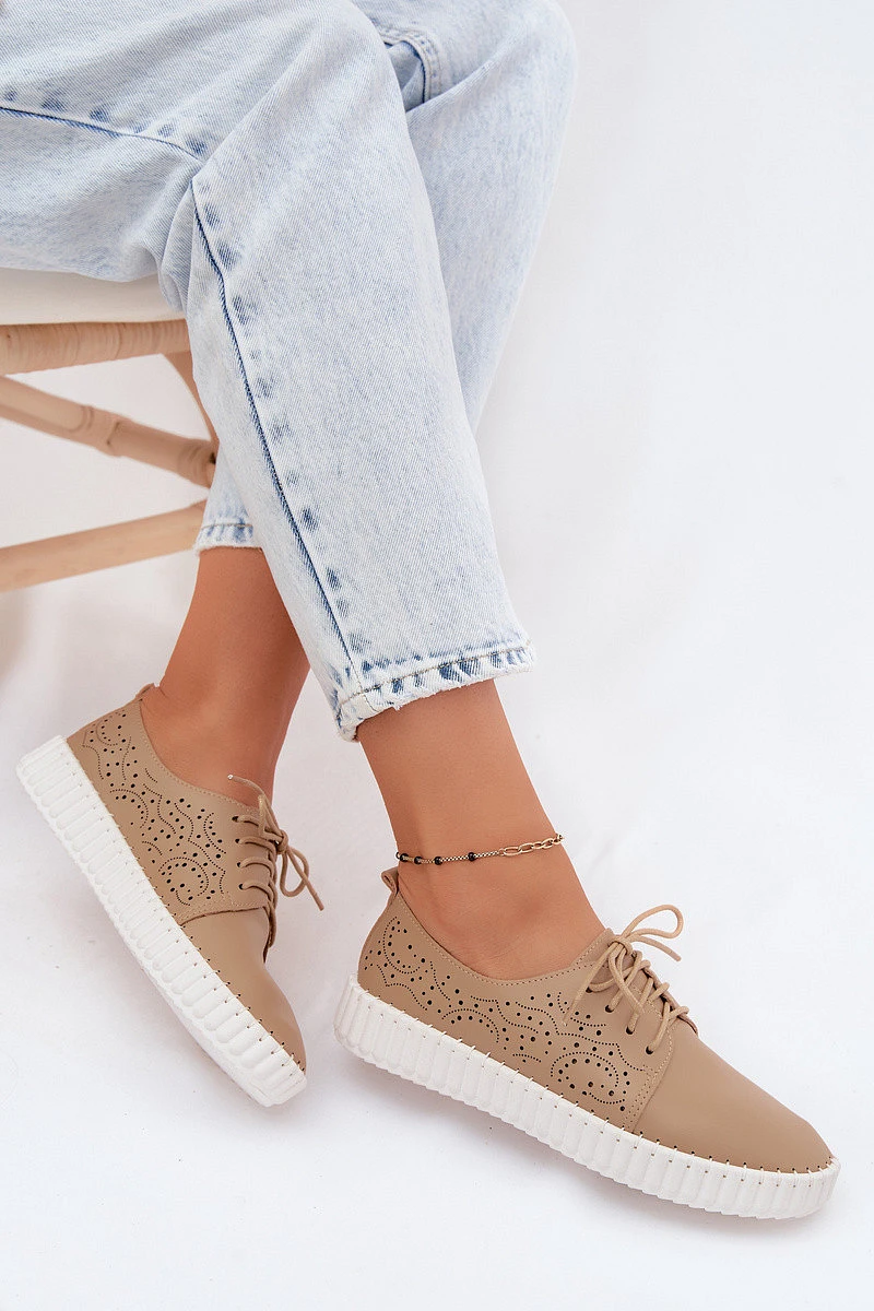 Dámské perforované polobotky s šněrováním tmavě béžové Pearla