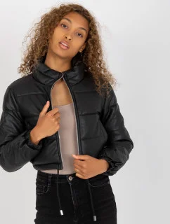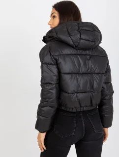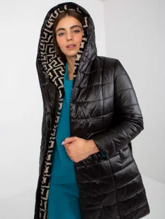 Černý prošívaný kabát s kapucí Libland (LD-7768)