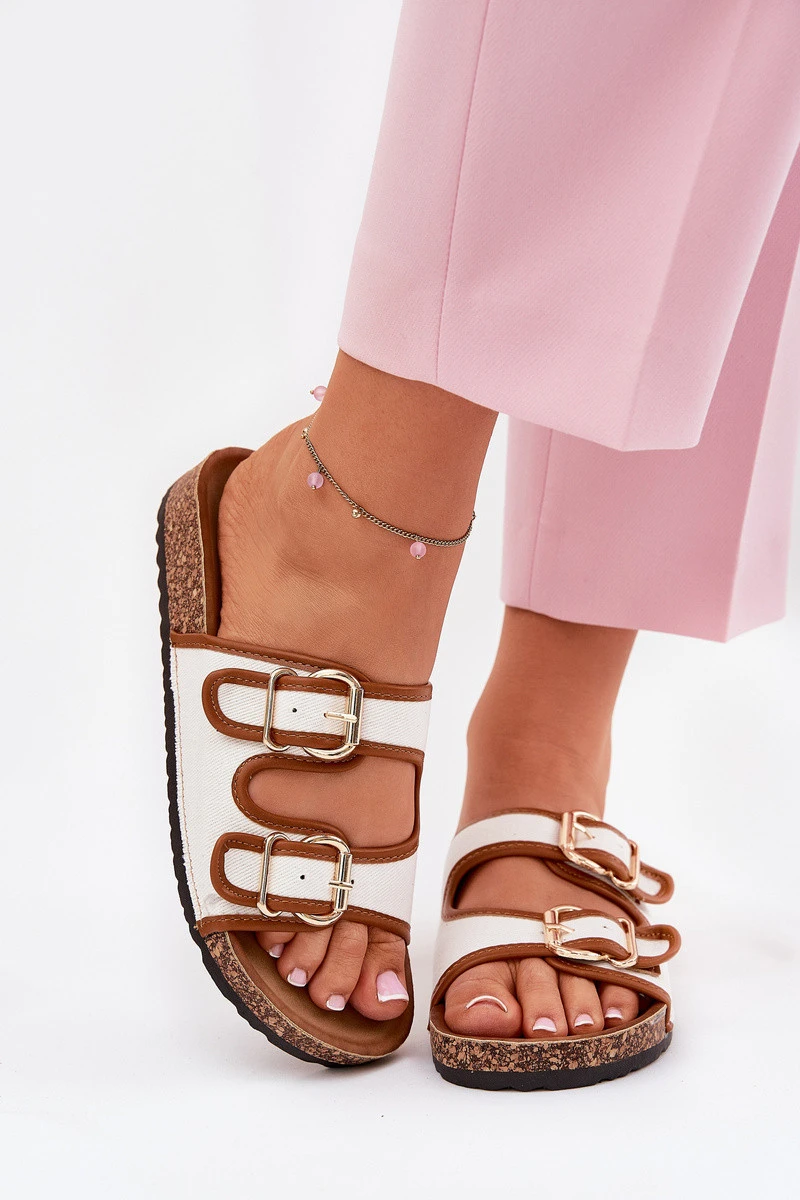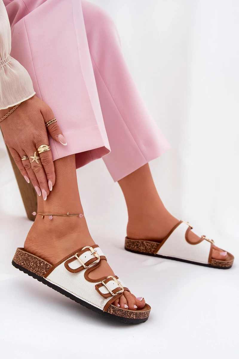 Dámské Plátěné Pantofle Na Korkové Platformě S Přezkami Bílé Osoffe