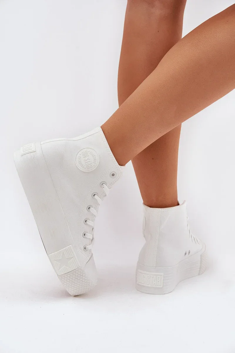 Bílé tenisky Big Star na platformě jsou nadčasovým doplňkem, který doladí každý outfit. Čistý vzhled, pohodlná vnitřní stélka a módní zvýšená podrážka dělají z těchto bot ideální volbu pro každodenní nošení. Jsou skvělou volbou do města, do školy i na výlety.