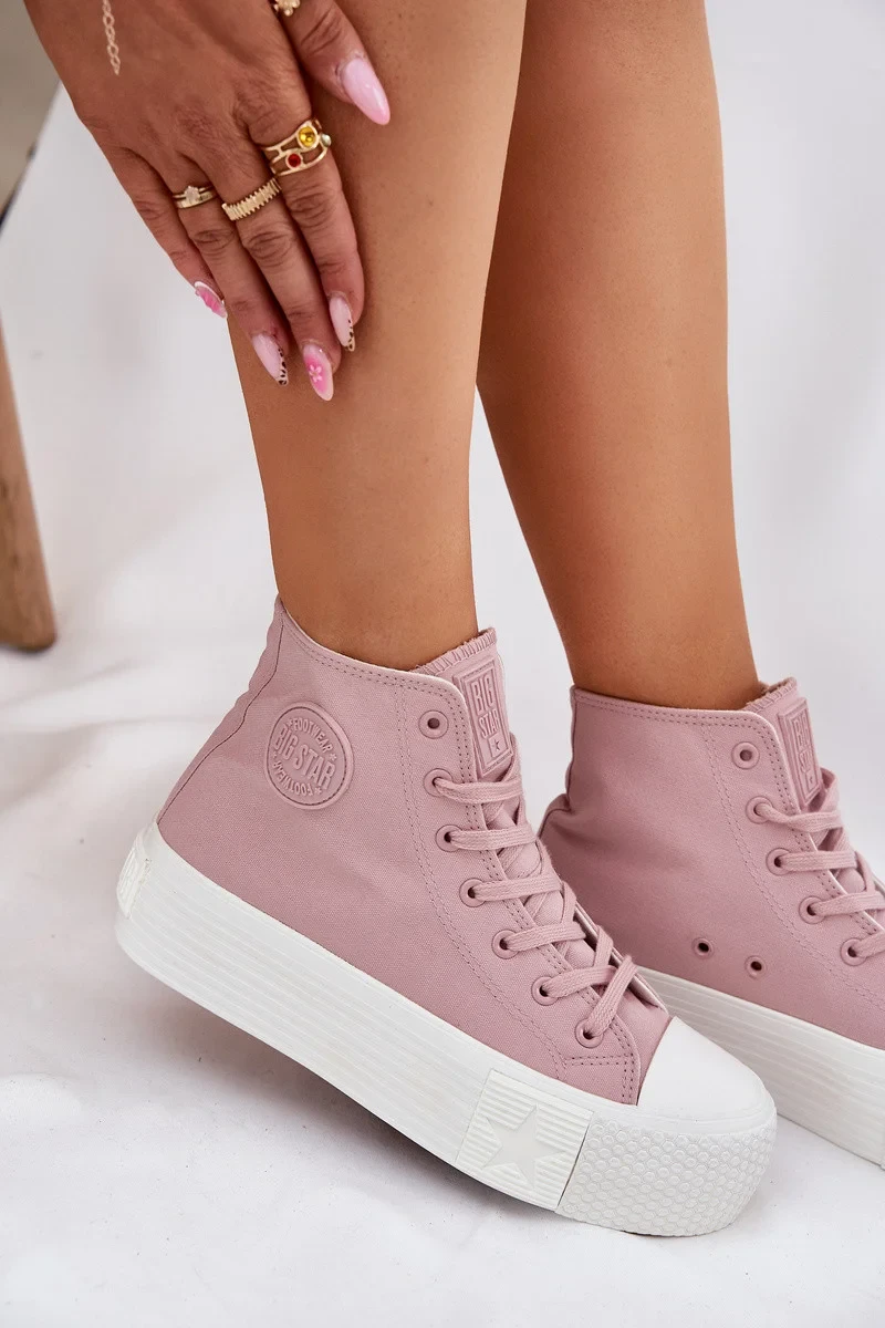 Oživte svůj šatník s těmito stylovými růžovými teniskami Big Star na platformě. Jejich ženský odstín v kombinaci s moderním designem na vyšší podrážce zaručeně upoutá pozornost. Pohodlný střih a měkký textilní svršek zajistí komfort po celý den – ať už jdete na procházku, nákupy nebo do školy.