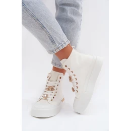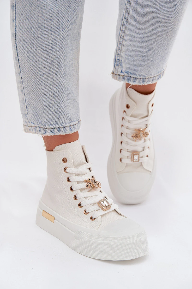 Dámské plátěné tenisky na platformě s ozdobnými připínkami – bílé Gracella