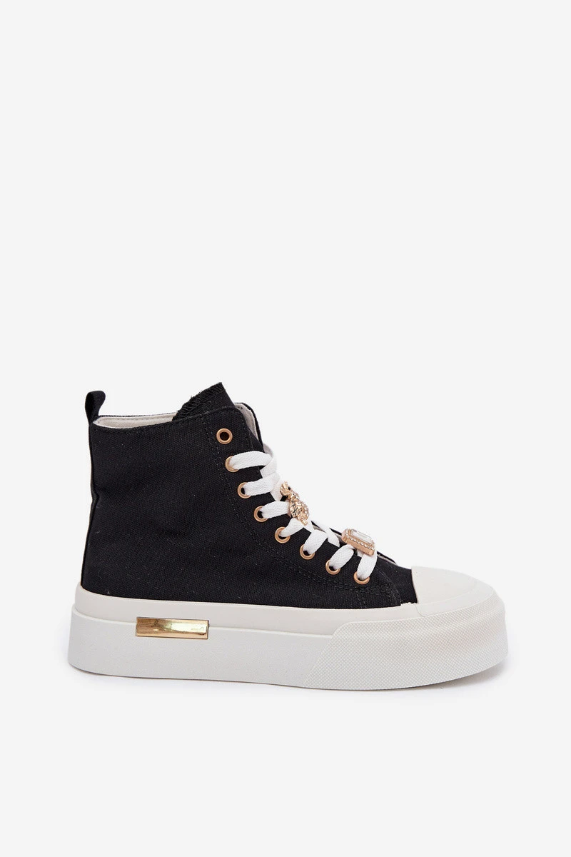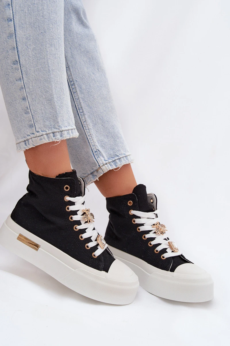 Dámské plátěné tenisky na platformě s ozdobnými připínkami – černé Gracella