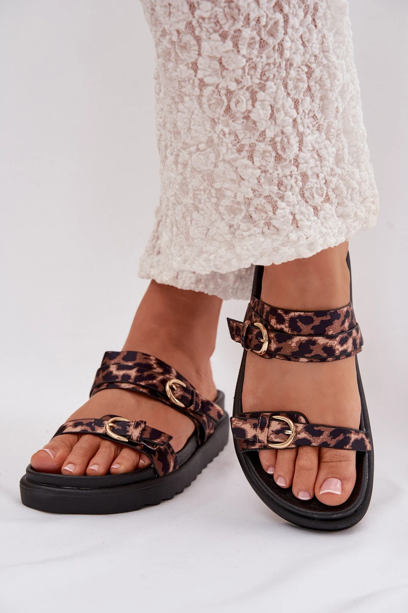 Dámské platformové sandály s pásky a zlatými sponami Leopard Rirea