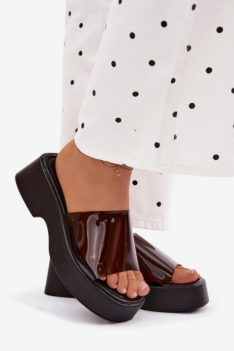 Dámské platformové sandály s průhledným páskem Černé Selestia