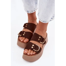 Dámské platformové sandály se zlatými sponkami Čokoládové Nelirae
