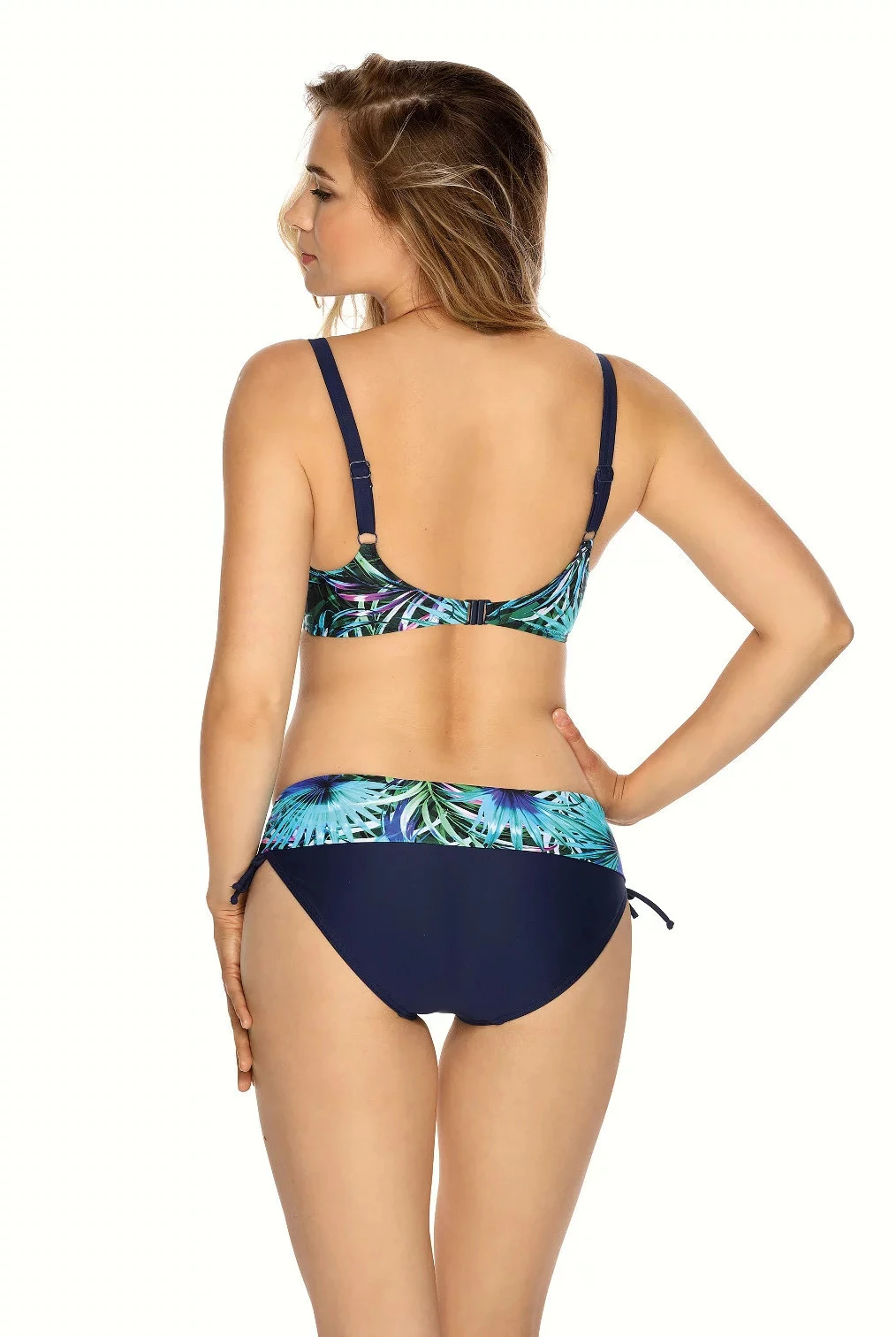 Klasické dámské plavkové kalhotky se vzorovaným pásem, který barevně ladí s podprsenkou.