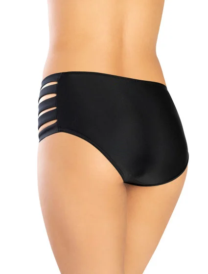 Černé plavkové kalhotky s výraznými pruhy na bocích. Dokonale podtrhnou každý plavecký úbor a okamžitě mu dodají styl a charakter. Přední strana je vyrobena z italské tkaniny a je jemně podšitá. Pohodlný midi střih, ideální na pláž.