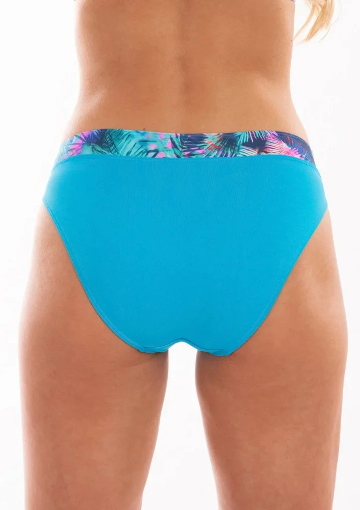 Dámské plavky Fantasy z nové kolekce Aura. Dámský nižší spodní plavkový díl v tyrkysové barvě s ozdobným lemem. U těchto plavek lze libovolně kombinovat spodní a horní díl v řádu zadaných velikostí jednotlivých dílů. Plavky jsou české výroby a koupí tohoto výrobku podpoříte produkci českého oděvního průmyslu.