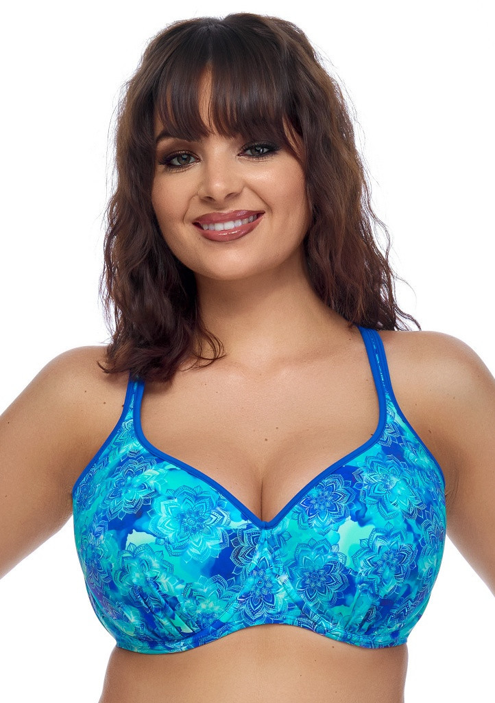Dámské plavky Fantasy 2026 z nové kolekce Boho. Dámský horní plavkový díl v upoutavém barevném provedení má jemně vyztužené nařasené košíčky s kosticemi a vysoký střed. Střih košíčků a široký obvod podprsenky s bočními pružnými kosticemi Vám zaručí pevné a pohodlné nošení a přitom Vám vytvaruje krásný a plný dekolt. Podprsenka má pevně všitá, nastavitelná ramínka. Zadní zapínání je ukončeno pevně všitou sponou na záháknutí. U těchto plavek lze libovolně kombinovat spodní a horní díl v řádu zadaných velikostí jednotlivých dílů. Plavky jsou české výroby a koupí tohoto výrobku podpoříte produkci českého oděvního průmyslu.