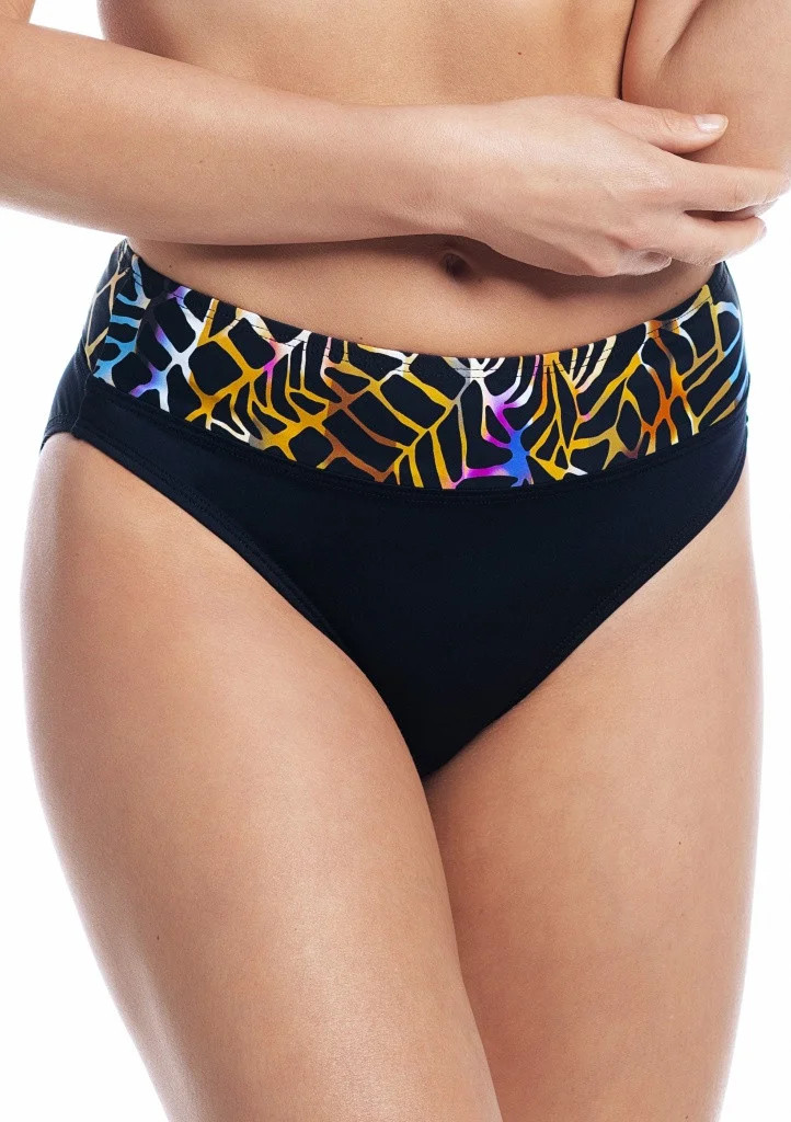 Dámské plavky Fantasy z nové kolekce Ora. Tento model v elegantní černé barvě je klasického střihu a po obvodu má všitý vyšší vzorovaný lem. U větších velikostí se snižuje výkroj nohaviček. U těchto plavek lze libovolně kombinovat spodní a horní díl v řádu zadaných velikostí jednotlivých dílů. Plavky jsou české výroby a koupí tohoto výrobku podpoříte produkci českého oděvního průmyslu.