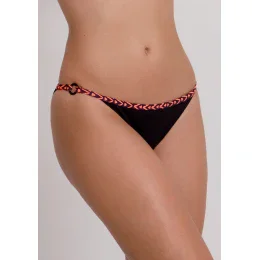 Dámské plavky Fantasy z nové kolekce Sigi. Dámský nižší spodní plavkový díl v elegantmí černé barvě, vzadu vykrojenější a s tenkými pásky na bocích. U těchto plavek lze libovolně kombinovat spodní a horní díl v řádu zadaných velikostí jednotlivých dílů. Plavky jsou české výroby a koupí tohoto výrobku podpoříte produkci českého oděvního průmyslu.