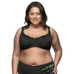 Dámské plavky FANTASY z kolekce Tropic. Plavková podprsenka není vyztužená, má kostice a vyšší střed. Má členěné košíčky pro dostatečnou oporu i většímu poprsí, z boku tlačí ňadra mírně k sobě. Širší ramínka jsou všitá pevně a jsou délkově nastavitelná. Obvod je vyšší, v bocích vyztužen silikonovou kosticí, která se Vám přizpůsobí, a je ukončen kovovou sponou na zapínání. Celý díl je podšitý. Podprsenku je možné kombinovat s jakýmkoliv spodním dílem ze stejné kolekce.