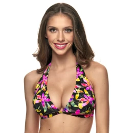 Dámské plavky Fantasy z nové kolekce Robie. Dámský horní plavkový díl v elegantním barevném provedení. Plavky mají vyztužené bezešvé košíčky trojúhelníkového tvaru. Košíčky jsou ve spodní části jemně nařaseny a po obvodu je užší pásek na zavazování vzadu. Ramínka jsou na zavazování za krkem a lze libovolně kombinovat spodní a horní díl v řádu zadaných velikostí jednotlivých dílů. Plavky jsou české výroby a koupí tohoto výrobku podpoříte produkci českého oděvního průmyslu.