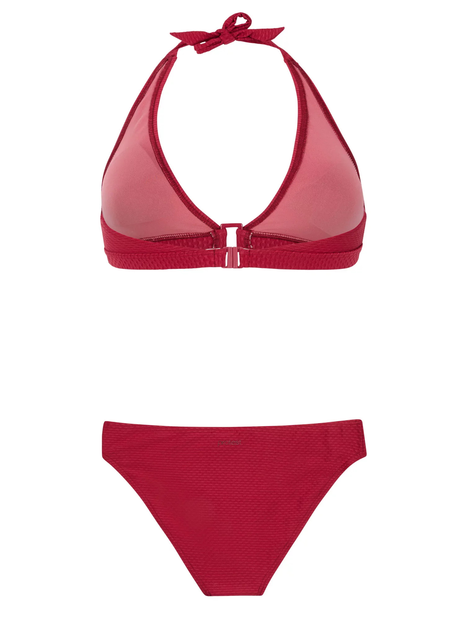 Lichotivý top bikin s výstřihem nabízí přizpůsobitelný střih díky zavazování u krku.