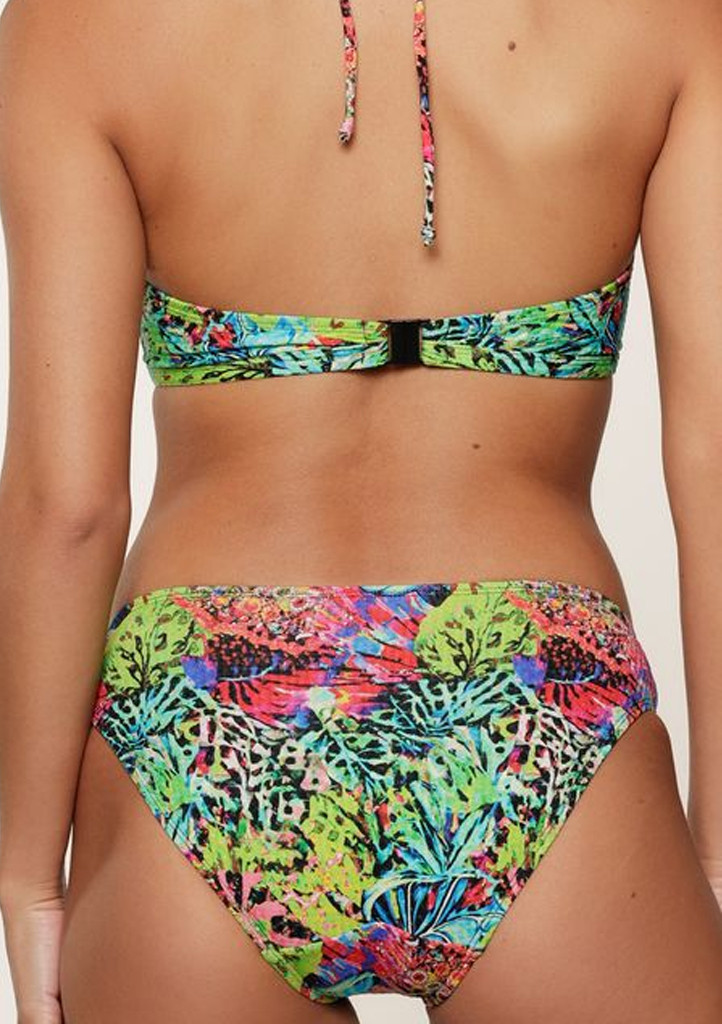 Spodní díl plavek LingaDore ve veselém tropickém vzoru zaujme na první pohled. Klasický střih s pohodlně vyšším pasem krásně padne, zvýrazní siluetu a poskytne příjemné krytí. Díky kvalitnímu recyklovanému materiálu s příměsí elastanu skvěle sedí a drží tvar i při celodenním nošení.