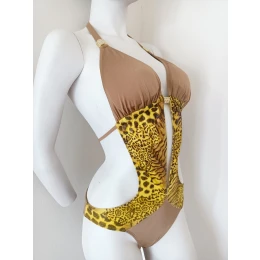 Dámské jednodílné plavky typu monokiny se zvířecím vzorem.