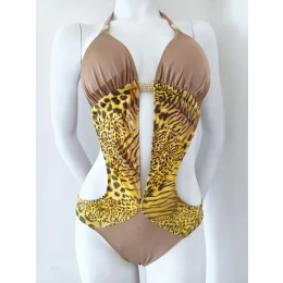 Dámské jednodílné plavky typu monokiny se zvířecím vzorem.