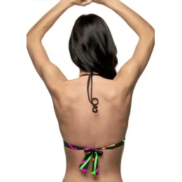 Dámské plavky Fantasy z nové kolekce Neon. Dámský horní plavkový díl. Plavky mají mírně vyztužené push up košíčky bez kostic trojúhelníkového tvaru. Pod košíčky okolo obvodu je širší lem ve stejné látce jako jsou košíčky. Ramínka jsou na zavazování za krkem a obvod je také na zavazování. Lze libovolně kombinovat spodní a horní díl v řádu zadaných velikostí jednotlivých dílů. Plavky jsou české výroby a koupí tohoto výrobku podpoříte produkci českého oděvního průmyslu.