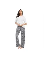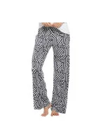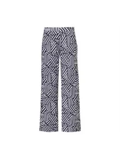 Plážové kalhoty Pastunette s kapsami – elegantní tmavě modré společenské kalhoty, noční kalhoty nebo plážové kalhoty s bílým grafickým potiskem. Možná znáte měkké vlastnosti kvality Bamboo? S viskózou získáte úplně stejné vlastnosti. Fantastický komfort a měkkost, která je příjemná na těle, s fantastickými vlastnostmi pro regulaci teploty a odvodu potu. Měkký žerzej vyrobený z rostlinných a dřevěných vláken