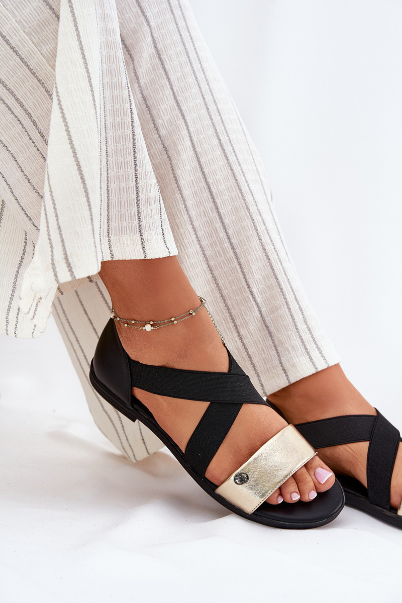 Dámské sandály vyrobené z eko kůže jsou vynikající volbou na teplé dny. Jsou usazeny na plochém podpatku, což zajišťuje stabilitu a pohodlí po celý den. Tento model se vyznačuje dvěma proplétajícími se elastickými pásky, které se dokonale přizpůsobí noze. Vpředu jemný ozdobný detail. Skvěle se kombinují s různými letními outfity, spojující funkčnost s módním vzhledem. Při výběru velikosti se řiďte tabulkou velikostí.