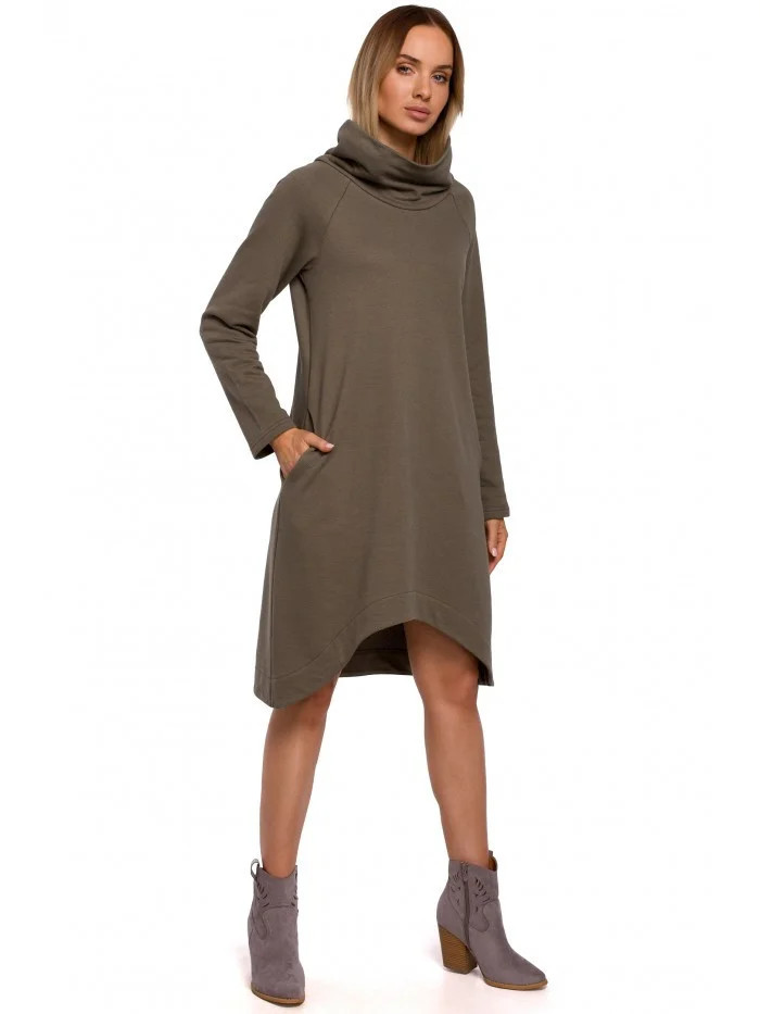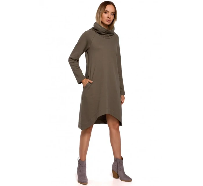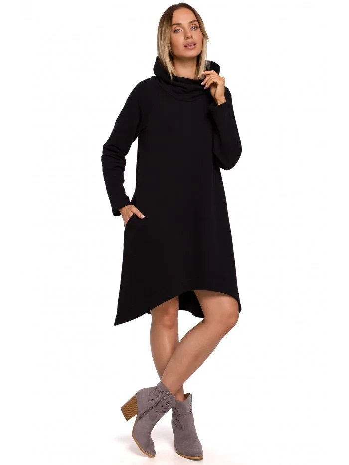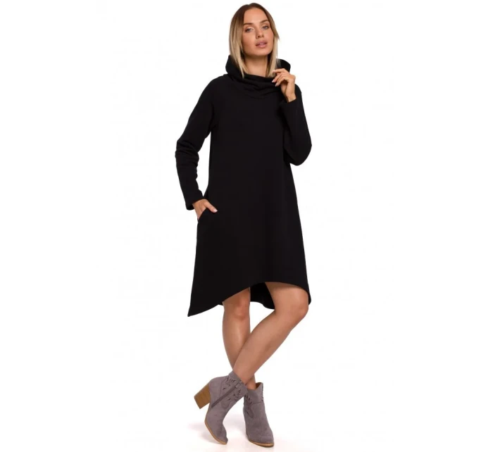 Měkká a příjemná pletenina a moderní design těchto šatů áčkového střihu s asymetrickým lemem z nich dělají nejlepší volbu pro celodenní outfit.