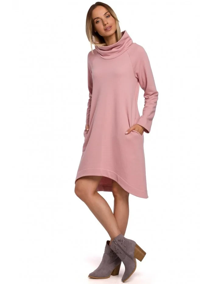 Dámské šaty s asymetrickým lemem M551 pudrově růžové - Moe