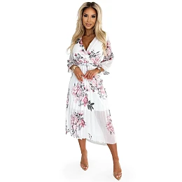 Dámské plisované midi šaty s výstřihem, opaskem a se vzorem růží na pozadí model 22121293 - numoco basic