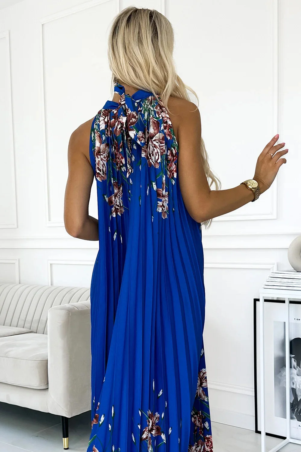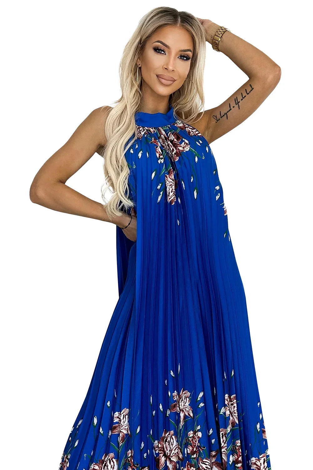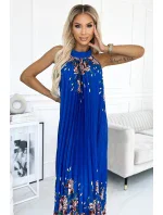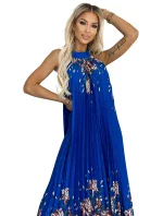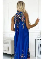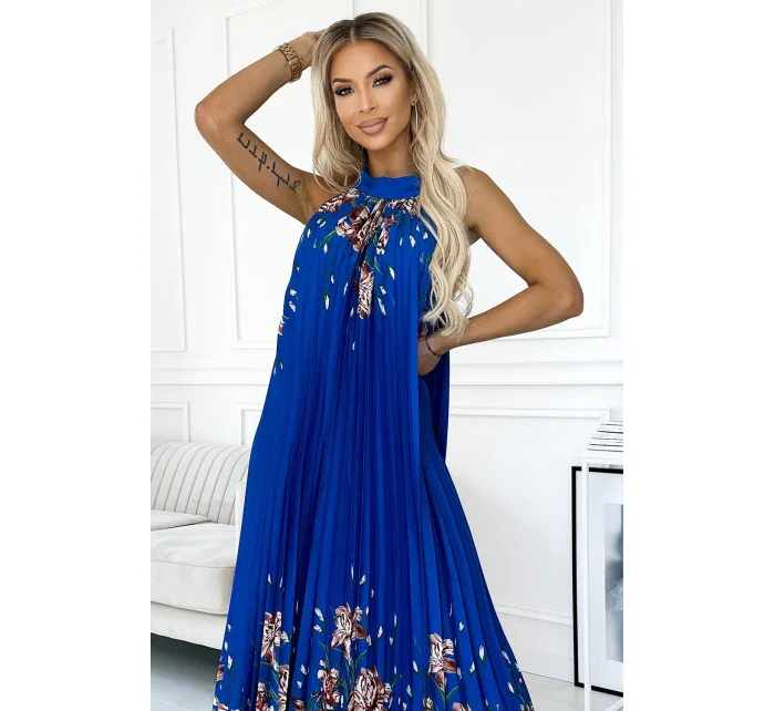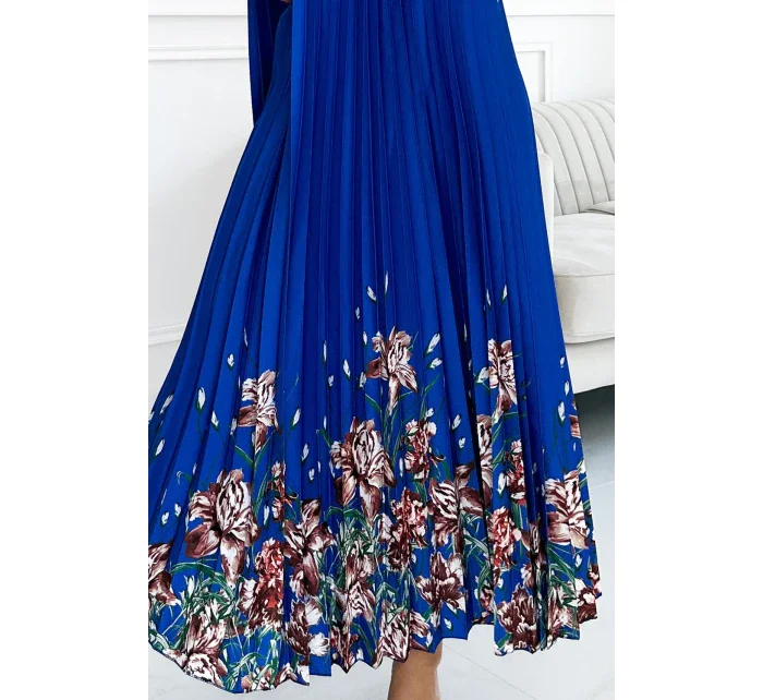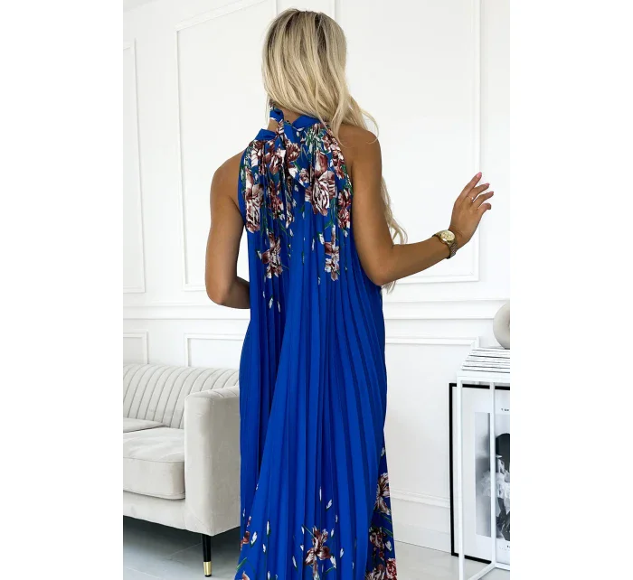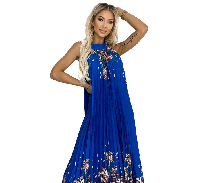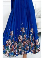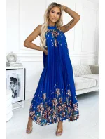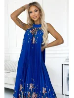 Dámské plisované saténové maxi šaty v chrpové barvě s květinovým vzorem model 18587643 - numoco basic