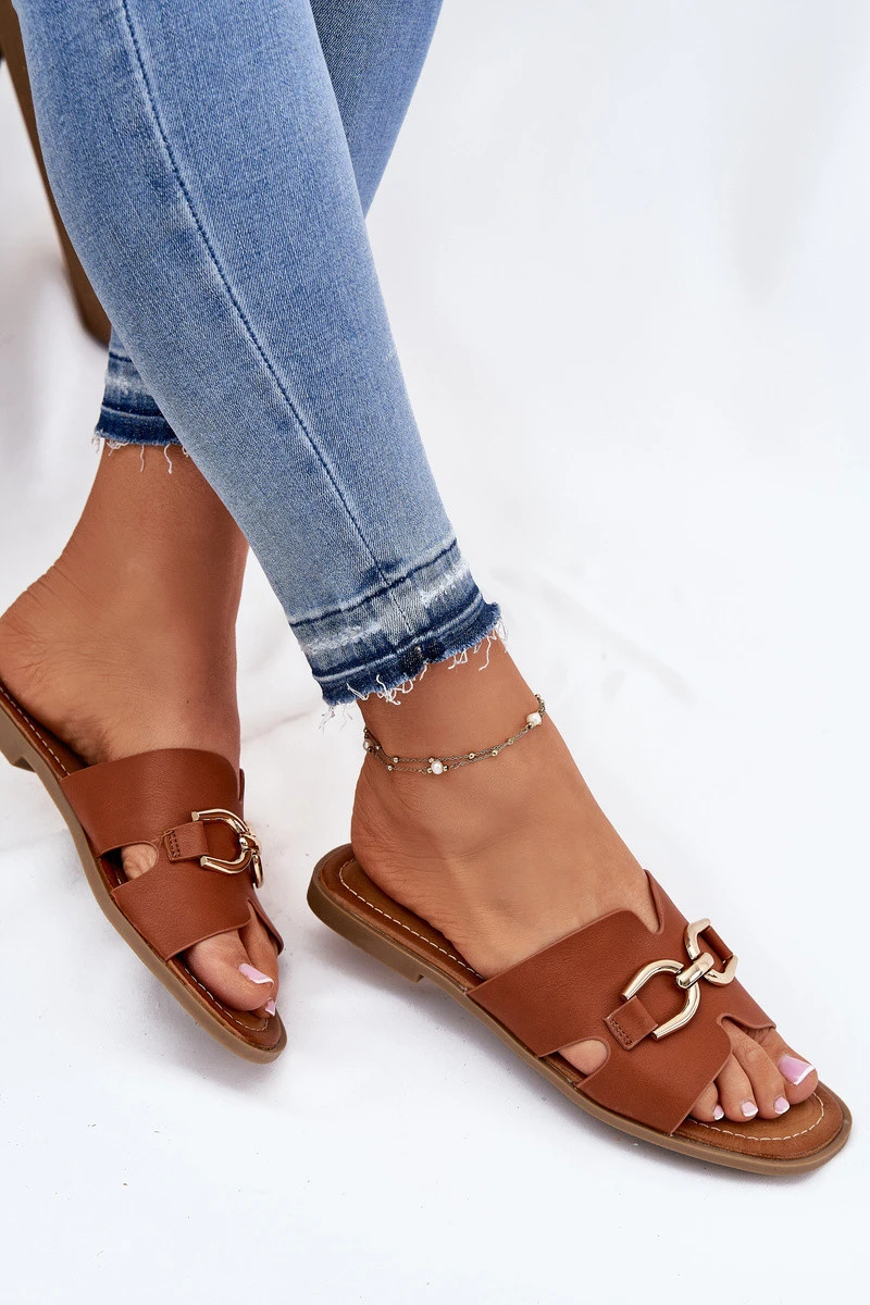 Dámské Plné Sandály S Dekorativním Detalem Hnědé model 21697826 - EVENTO