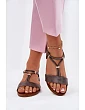 Ploché dámské sandály vyrobené z kvalitní ekokože. Uzavírání na nastavitelný popruh s přezkou zajistí ideální přizpůsobení a pohodlí při nošení. Ideální na teplé dny, kombinují styl s funkcionalitou, skvěle se hodí jak na každodenní procházky, tak i na elegančnější události. Při výběru velikosti se řiďte tabulkou velikostí.